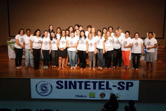 Em seguida, a mesa de discussões foi formada para que personalidades do meio sindical saudassem o público. Participaram Almir Munhoz, presidente do Sintetel; Luiz Antonio de Medeiros, Secratário Nacional das Relações de Trabalho; Gilberto Dourado, diretor da Contcop; Cenise Monteiro de Moraes, da Uni-Américas; Cristiane Nascimento, diretora da Fenattel; Elza Pereira, do Sindicato dos Metalúrgicos de São Paulo; Maria Auxiliadora, da Força Sindical; Keila Machado, companheira do Sinttel-RJ; e Mônica Veloso, diretora da Confederação dos Metalúrgicos.